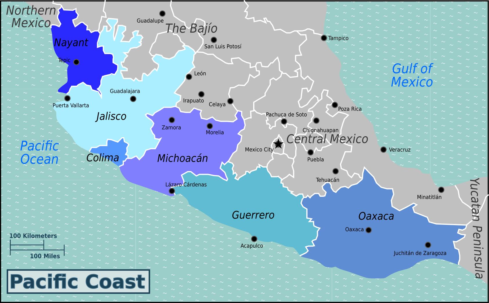 மெக்சிகோவில் பசிபிக் கடற்கரை, மேப்